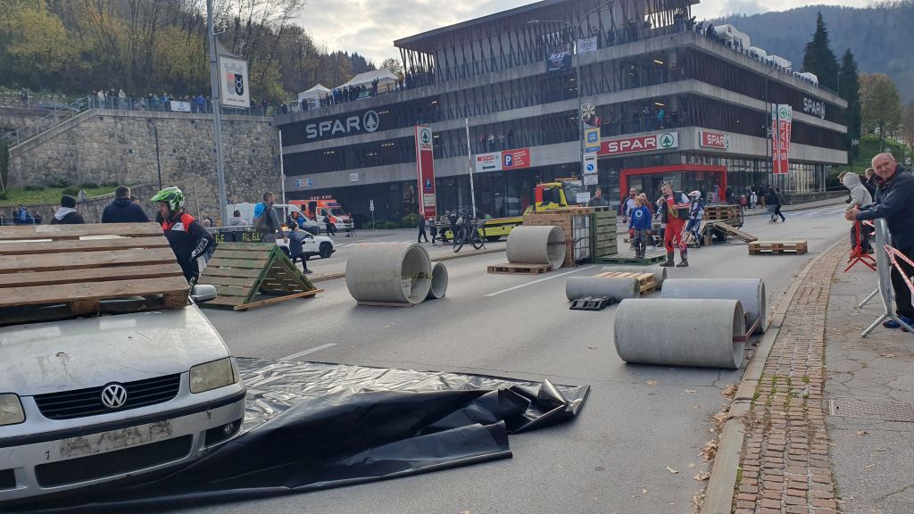 Hitri avtomobili in spretni motociklisti. Pred in med sobotnim specialom v samem centru Idrije smo na cesti zgradili poligon in gledalcem predstavili trial.